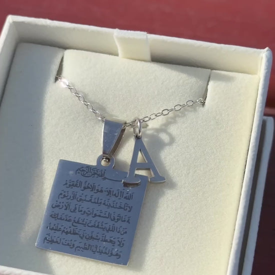 Ayetel Kürsi Gümüş Kaplama Kolye – Kişiye Özel Baş Harfli Model 2*2 Cm