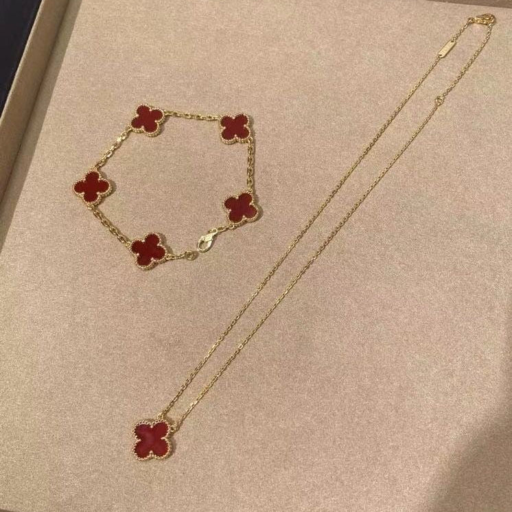 Hiç Çıkarma Yonca Bileklik Kolye Set Bordo