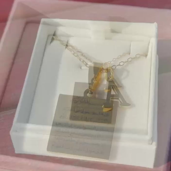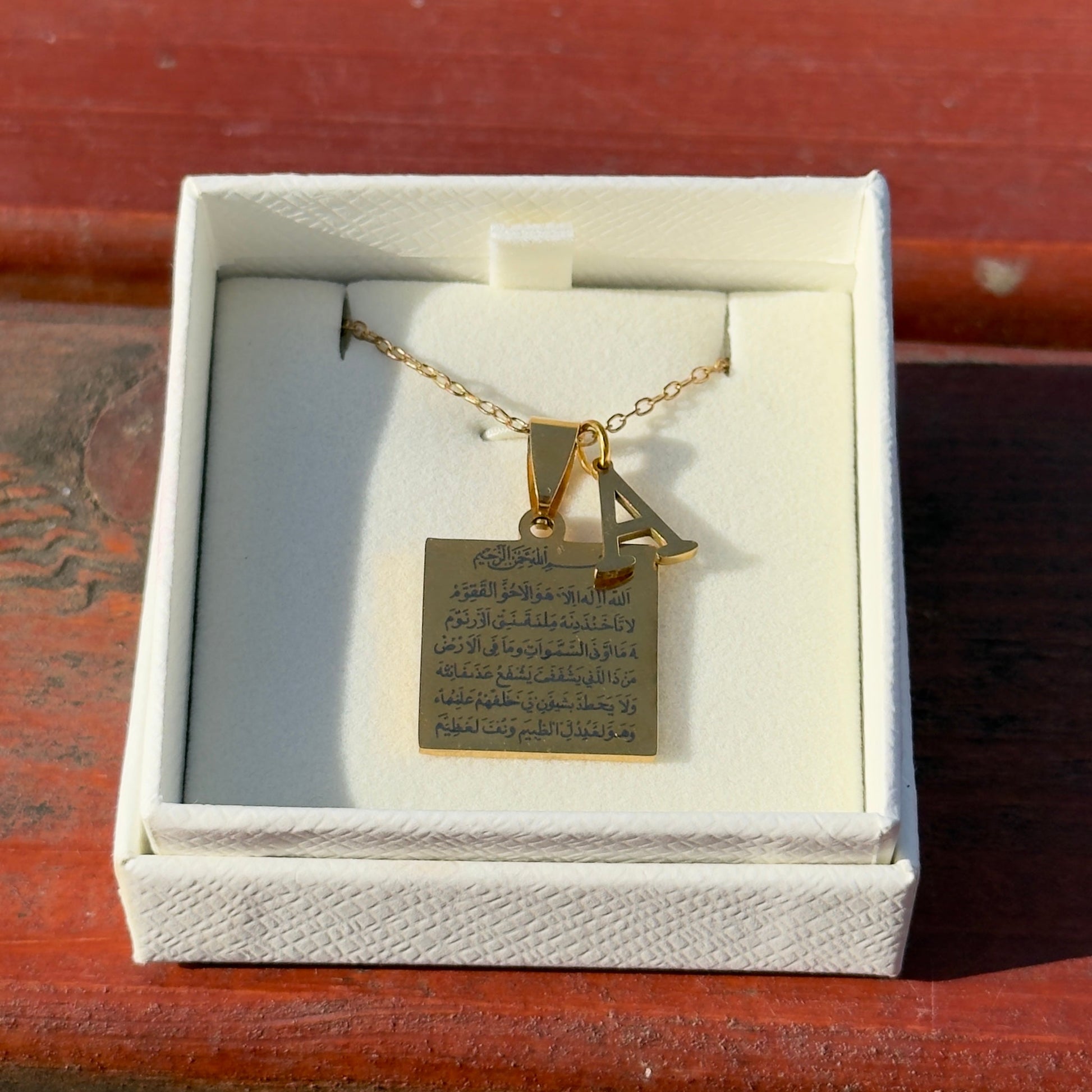 Ayetel Kürsi Altın Kaplama Kolye – Kişiye Özel Baş Harfli Model 2*2 Cm